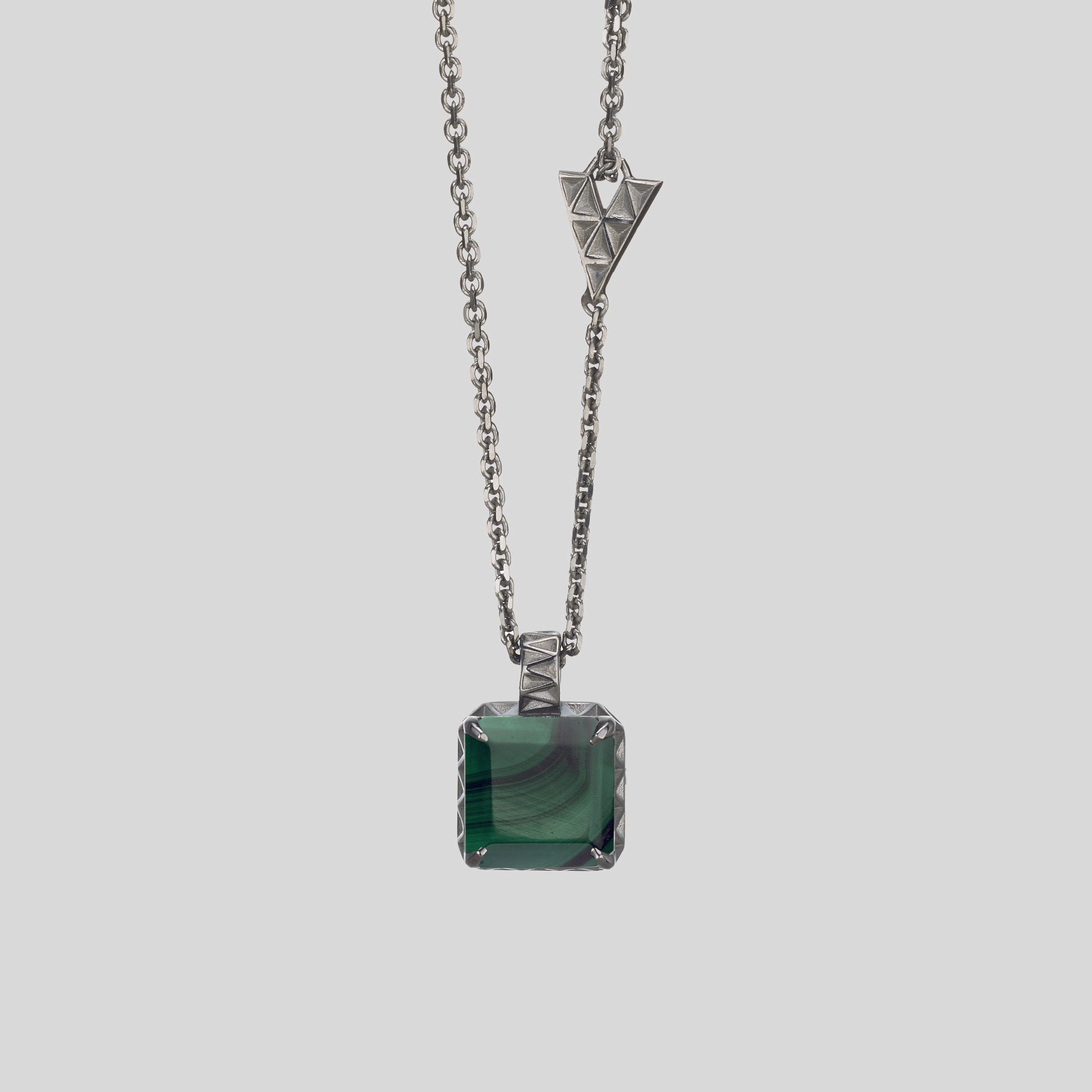 925 silver ruthenium necklace, natural smoky quartz, 13x13 square cut.
