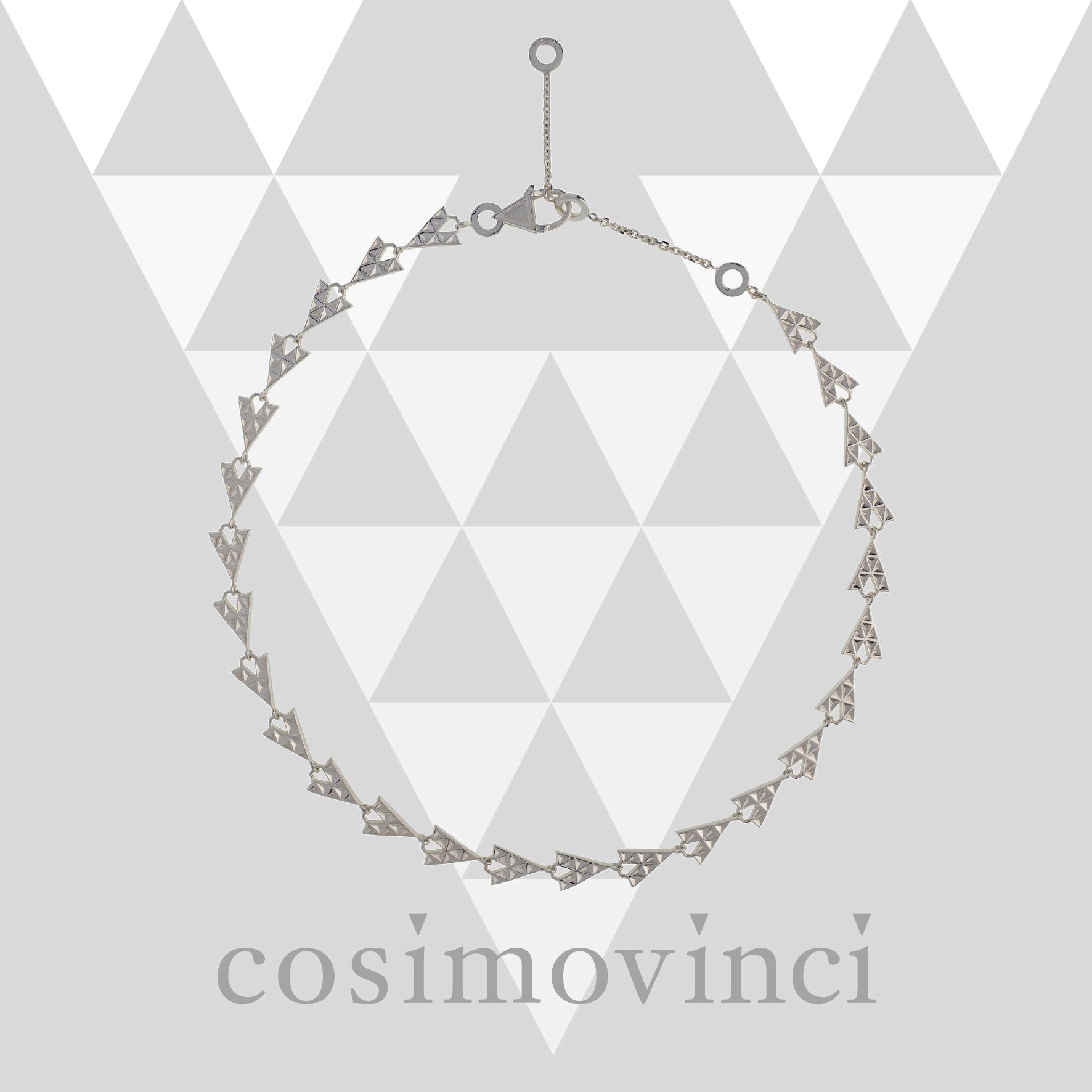 Collana in argento 925, composta da multiple V Prisma assemblate in una catena dal forte impatto visivo. Un design iconico e riconoscibile, ispirato alla V Prisma sfaccettata, simbolo distintivo della collezione V Prisma One.
